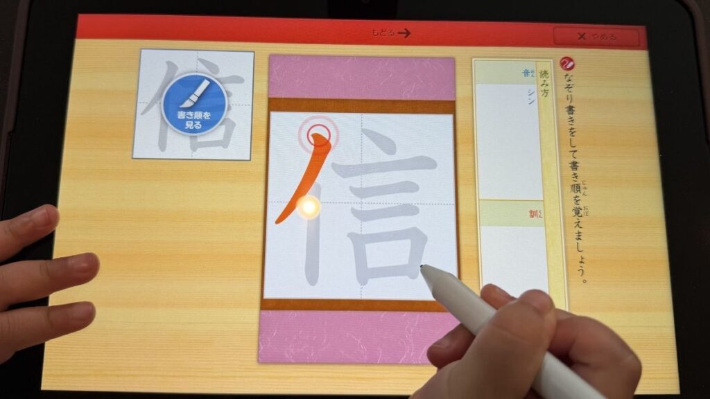 漢字の書き順はもちろん、四角いマスのどこから書き始めたか、文字のバランスはどうか、トメはねはらい、まで細かく判定して「〇点」と評価してくれる賢さ。 わたしが横で「もっと丁寧に書いて!」と言わなくても、汚い字は認識してもらえない仕組みが最高です。