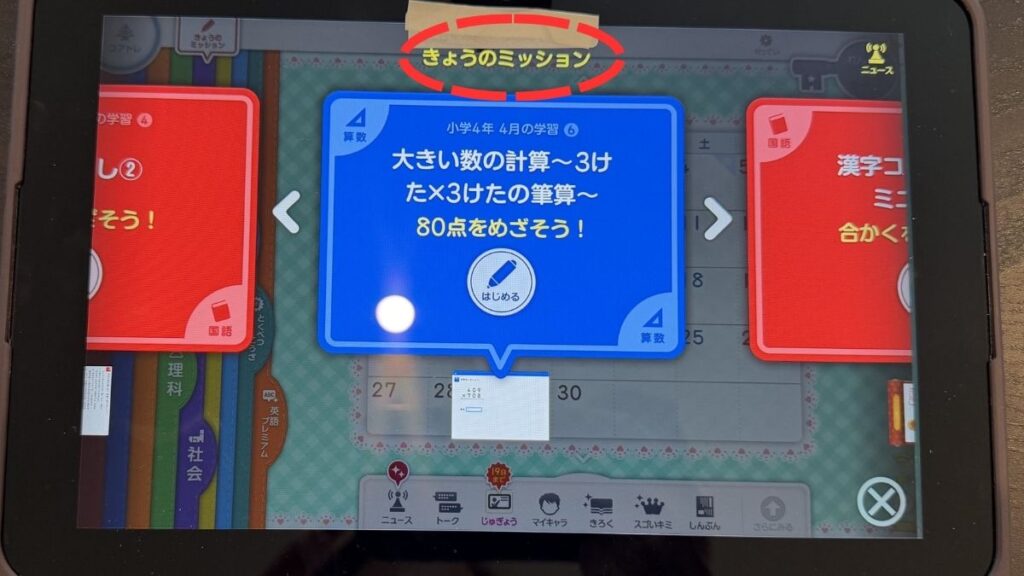以前は私が「今日はこのプリントと、このワークを1ページ進めてね」と指示を出していましたが、今はタブレットを開けばOK。今日やるべきミッションを自動で提示してくれます。